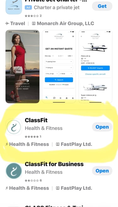 A CLASS PASS ON THE CLASSFIT APP